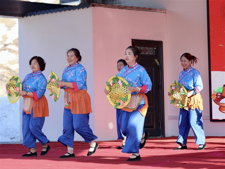 村民们身着盛装,在广场舞台上表演了秧歌、独唱、群舞等10多个自编、自导的节目。表演者幸福的笑容感染着现场观众,精彩的节目赢得阵阵叫好声。20个黄铜锅架在广场两侧,照壁山乡平顶山村、双湾村、头道沟村等10个村各自带来了两种口味的火锅供游客品尝,锅内汤汁翻滚、香气四溢。舞台对面则是农副产品展销区,村民将自家做的面点、奶制品、粉条等摆出来售卖。