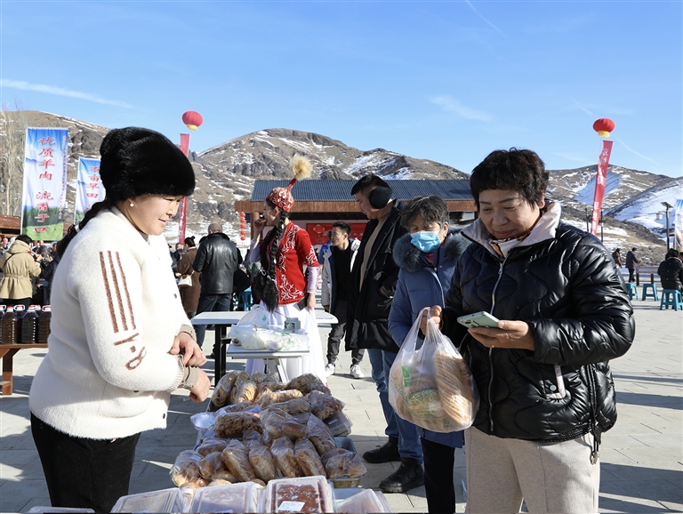 “这里的空气清新、雪景独特。我是带着家人自驾来玩的。热腾腾的火锅非常美味,你看,我还买了土豆粉条和熏马肠。”乌鲁木齐游客刘鑫边说边向记者展示手中满满两袋农副产品。