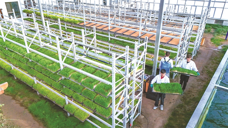 位于呼图壁县石梯子哈萨克族乡白杨河村的新疆农业职业技术学院水培牧草示范基地,通过“公司+院校”共建模式试种水培牧草,取得成功。呼图壁县水培牧草的成功试种,将进一步改善当地草原生态环境,有效解决冬季牧草缺乏问题,助推畜牧业健康发展。图为1月6日,工作人员在该基地对种植的水培牧草进行日常管护。