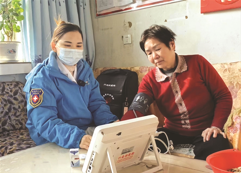 如今,在吉木萨尔县各社区,对有烫伤、脑梗死、陈旧性心梗等病症以及生活不能自理的老人,健康管理师会定期上门检查医治,并教会家属护理方法,用“行走的医院”背包解决老人健康难题。“行走的医院”背包志愿服务使“健康以预防为主”这一目标逐渐变为现实,为百姓减轻了负担。