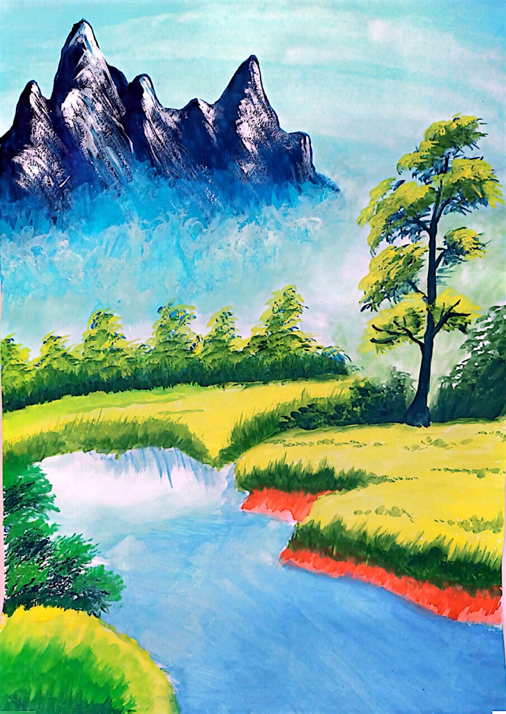 content_1159_114938.htm-《家乡的山水》 水粉画,