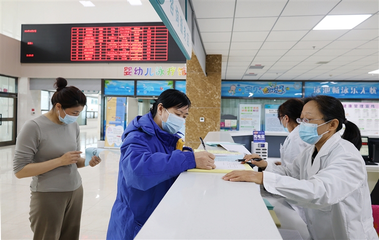 2月27日,昌吉州妇幼保健院医护人员指导前来接受“两癌”筛查的妇女登记相关信息。