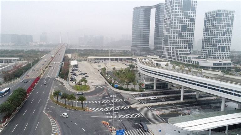 横琴大桥“二线”通道海关监管区(无人机照片,2月29日摄)。