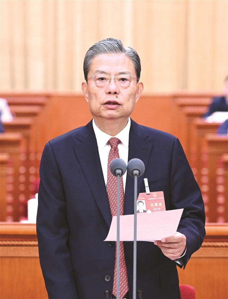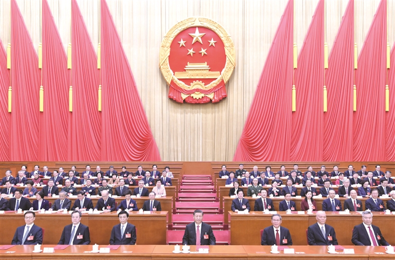 赵乐际指出,大会期间,代表们肩负党和人民重托,以饱满的政治热情和昂扬的精神状态依法履职尽责,认真审议各项报告和议案,会议成果充分体现了党的主张和人民意志的统一,彰显了全过程人民民主和国家根本政治制度的显著优势。
