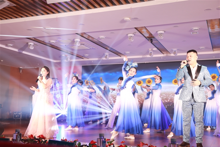 3月2日下午,农行昌吉分行举办“追梦新时代 巾帼展风采”庆“三八”文艺汇演。州分行机关及七县(市)支行的220余名基层一线青年员工利用业余时间自编自演、精心排练,献上17个精彩的文艺节目共庆“三八”国际妇女节,展示了农行员工的靓丽风采和独特魅力。图片为农行奇台县支行青年演员表演的歌舞《星辰大海》。