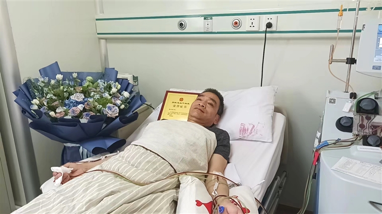 从确定捐献时间起,张先生便开始调整饮食习惯和生活作息,确保以最佳的状态迎接捐献采集。6月2日,在昌吉州红十字会工作人员的陪护下,张先生来到新疆医科大学第一附属医院,开始注射造血干细胞动员剂等待采集,最终成功捐献。