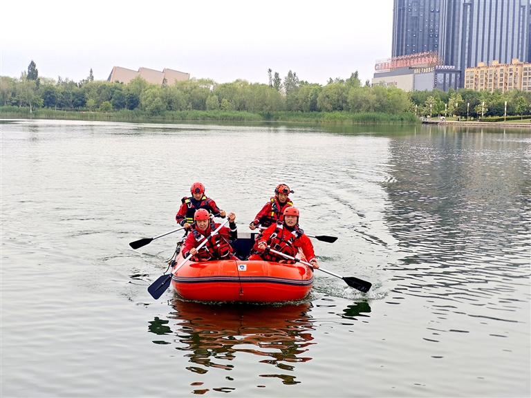 本报讯 记者付小芳、通讯员张帅报道:为做好防汛抗旱、应急救援等各项工作,提升消防救援队伍水域救援实战能力,5月30日,昌吉州消防救援支队在昌吉市滨湖河中央公园开展水域救援技术综合实战演练。