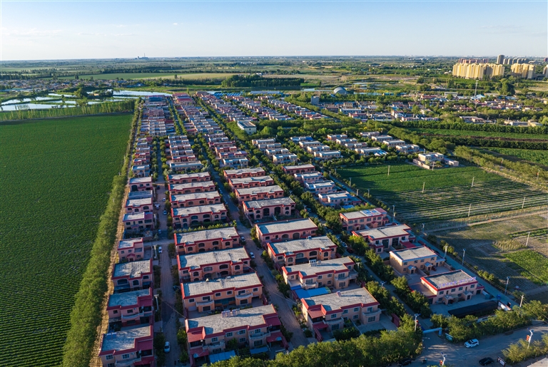 初秋时节,毗邻玛纳斯国家湿地公园的玛纳斯县兰州湾镇八家户村绿树成荫,平坦宽阔的道路两旁,独具特色的徽派农家小院一排排,整个村庄干净整洁。