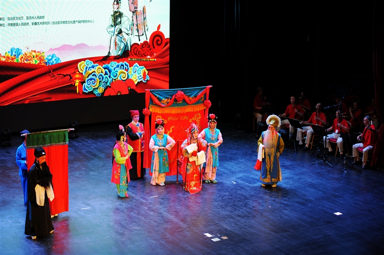 “喜庆的秧歌扭得欢,扭得欢,幸福的歌儿比蜜甜,比蜜甜。扭得村里面貌变,唱得日子像过年,像过年……”8月15日,在呼图壁县二十里店镇的文化大集上,呼图壁县芊惠源新疆曲子剧团团长、国家级非物质文化遗产项目新疆曲子自治州级传承人窦永虎和搭档们一起演唱着新疆曲子现代小戏《美丽的一座城》。当天,昌吉市与呼图壁县的曲子剧团轮番上阵,把传统戏曲演绎得淋漓尽致,吸引了十里八村的数百名群众前来观看,演出大受好评。
