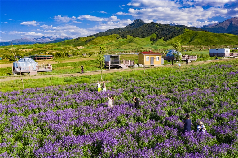 山坡中心村距离天山天池景区售票处仅有1公里。这几年,依托天山天池景区,山坡中心村从“守着三亩薄田”到发展“乡村旅游”,全村670多人中有260多人吃上了“旅游饭”,旅游业收入在全村经济收入中占比超过一半。
