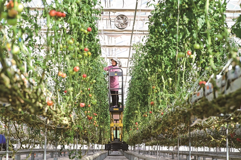 昌吉国家农业高新技术产业示范区新疆农业博览园的未来农业科技馆,工人在管护蔬菜。□本报记者 陶维明摄