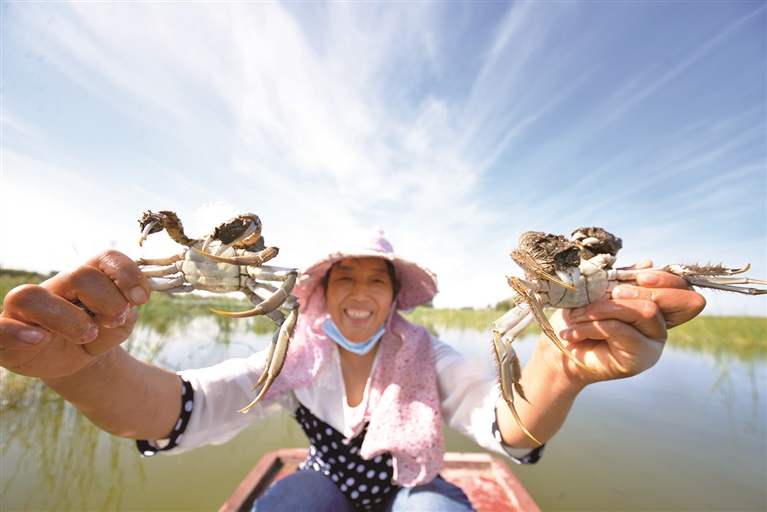 玛纳斯县广东地乡新湖坪村的螃蟹喜获丰收。 □王昊波摄