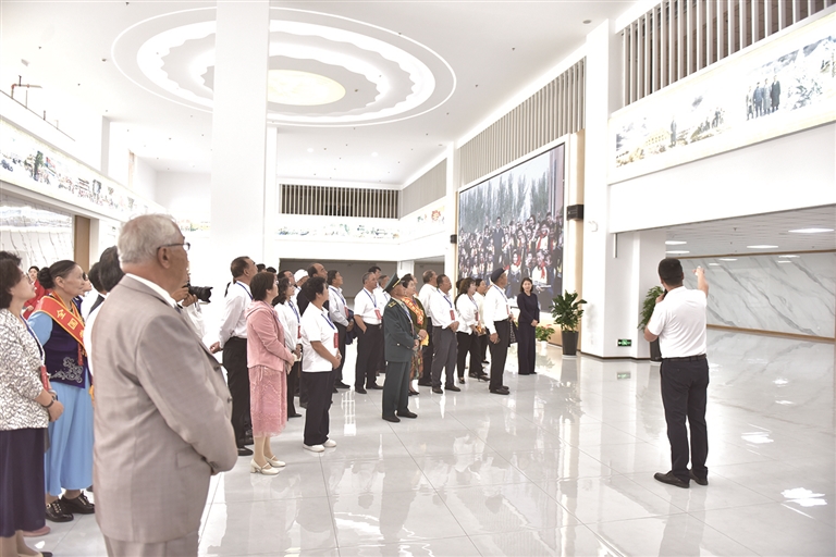 本报讯 记者高云哲报道:9月3日,昌吉回族自治州成立70周年庆祝大会召开。当天,出席庆祝大会的各位嘉宾来到新建成的昌吉州铸牢中华民族共同体意识主题馆参观,现场聆听了中华民族共同体形成发展的昌吉故事,回顾了昌吉州各族群众共同团结奋斗、共同繁荣发展的光辉历程。