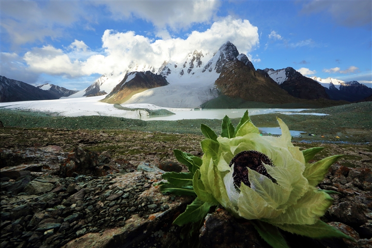 《天山雪莲盛开在博格达峰下》 □孙国富摄