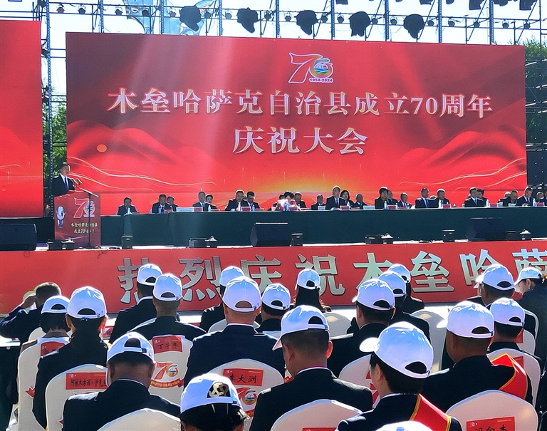 本报讯 记者刘辉报道:辉煌巨变七十载,砥砺奋进新时代。9月4日,木垒哈萨克自治县成立70周年庆祝大会在木垒河广场举行。全国人大民族委员会、国家民族事务委员会致贺电。