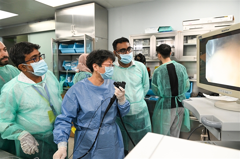 9月1日至15日,“一带一路”卓越医学人才国际研修班在江苏省人民医院(南京医科大学第一附属医院)举办。据介绍,此次研修班共有来自15个国家的45名学员将参与急诊急救、消化内镜领域的集中培训,其后部分学员将继续进行呼吸科、普外科、妇产科及儿科专业为期90天的临床观摩研修活动。□新华社记者 春鹏摄