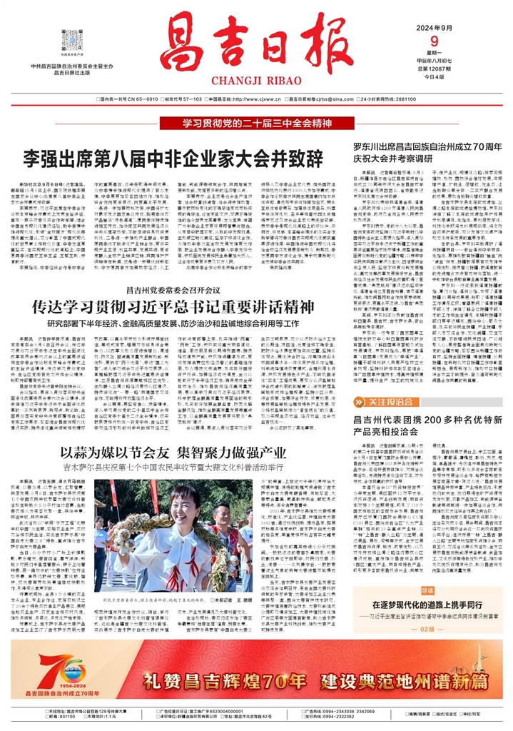 中共昌吉回族自治州委员会主管主办 昌吉日报社出版