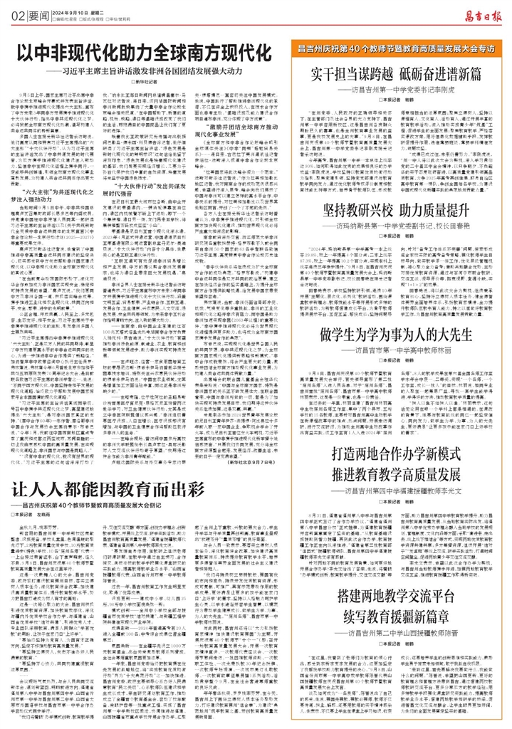 “在这里,我看到了老师们为教育的倾心付出,感受到求新求变求发展的合力,这更加坚定了我帮扶学校助力教育提升的决心。”9月8日,山西省忻州市第一中学高中数学教师陈晋代表山西援疆教师在庆祝昌吉州第40个教师节暨教育高质量发展大会上发言。