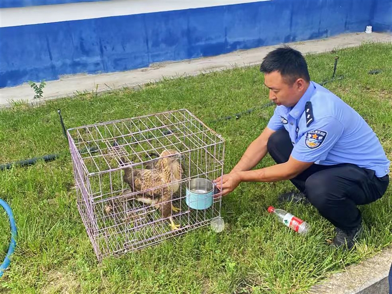 本报讯 通讯员徐承秀、白梦卓报道:近日,呼图壁县公安局食品药品环境犯罪侦查大队民警接到群众报警称,在呼图壁县某煤化工厂附近路边坑洼里发现一只受伤的大鸟,这只大鸟无法飞行。