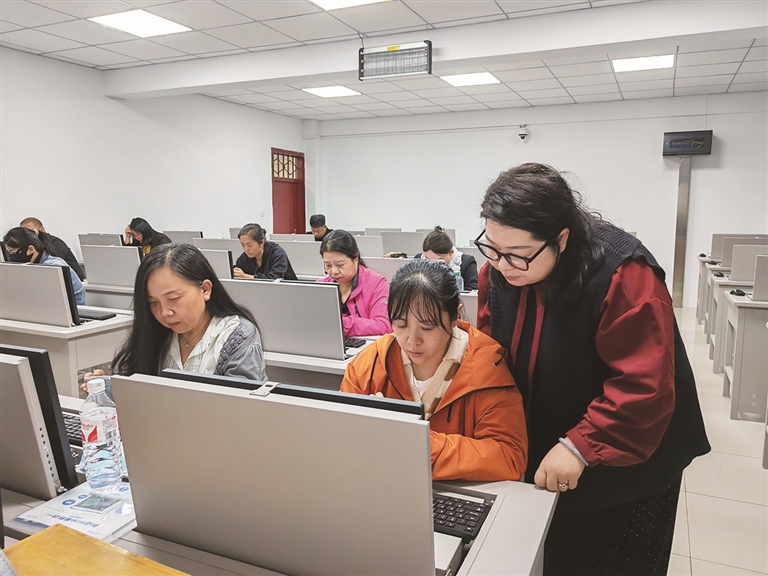 “化妆不仅可以为我们弥补缺陷、美化容貌,还能让我们增强自信……”9月25日晚8点半,夜幕降临,华灯初上,昌吉开放大学网络中心楼教室内,专业美妆老师正在为20余位学员授课,课堂气氛轻松活跃。