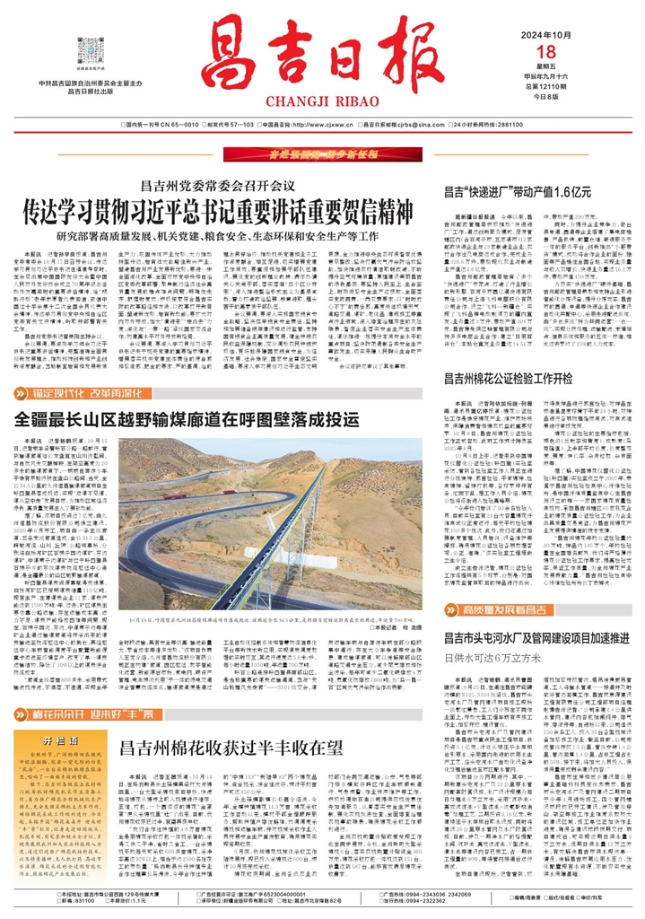 中共昌吉回族自治州委员会主管主办 昌吉日报社出版