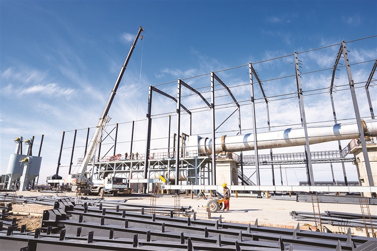 11月10日,位于奇台县的新疆桂新环保科技有限公司年产20万吨铝酸钙项目施工现场,施工人员正加紧作业。据悉,该项目总投资2亿元,占地面积176亩,分三期建设,预计明年4月建成投产。项目投产后,可将电解铝产生的废渣加工成铝酸钙粉,变为净水剂和精练渣,广泛应用于污水处理厂、炼钢厂。该项目年产值预计达3.8亿元,将有力推动昌吉州铝产业转型升级,实现绿色产业闭环。□本报记者 何 龙摄