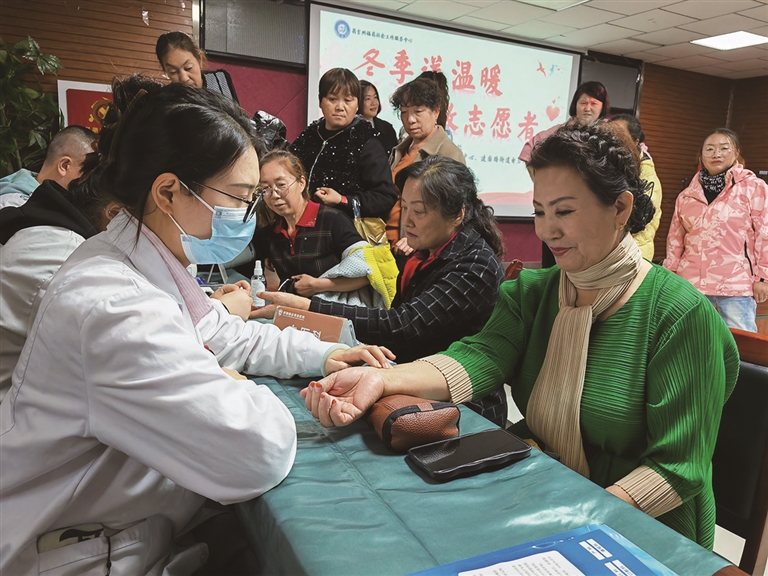 图为新疆赫迩思瑞医院的医生为电力社区的志愿者义诊。