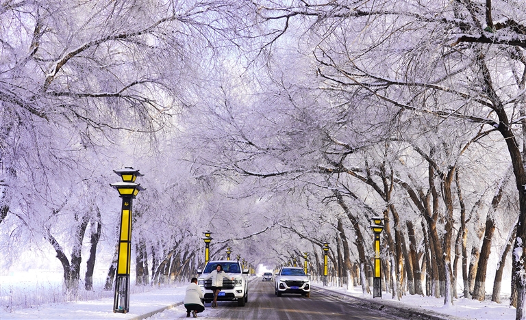 11月28日,受强冷空气影响,吉木萨尔县迎来了一场大规模降雪。降雪过后,吉木萨尔北庭国家湿地公园宛如银装素裹的童话世界,雾凇景观更是吸引了众多游客前来拍照打卡。□马文婷摄