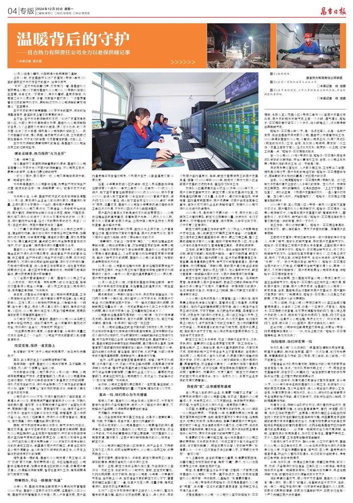 王于杰对供暖的满意和赞叹的背后,是昌吉热力公司全体员工的忙碌和坚守。