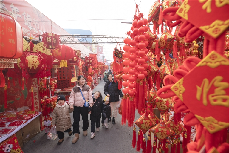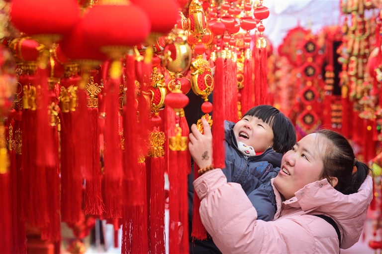 1月22日,市民在昌吉市亚中商城选购春节饰品。春节来临,昌吉市年货市场供应充足,处处洋溢着喜庆的气氛。