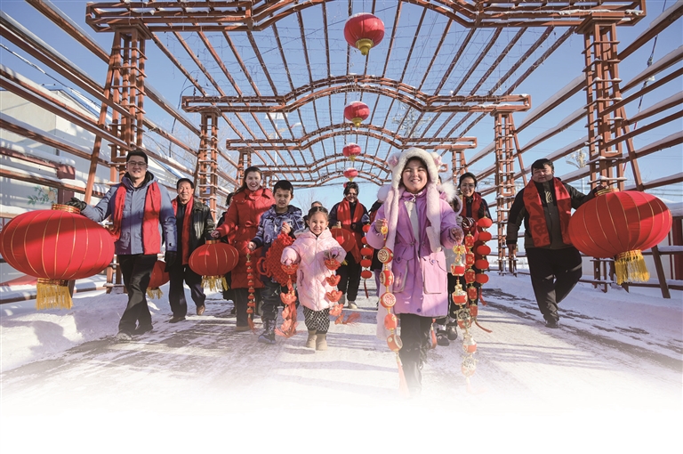 1月26日,呼图壁县二十里店镇二十里店村,村干部和村民一起提着灯笼、中国结等春节饰品,欢欢喜喜迎新春。 □本报记者 陶维明摄