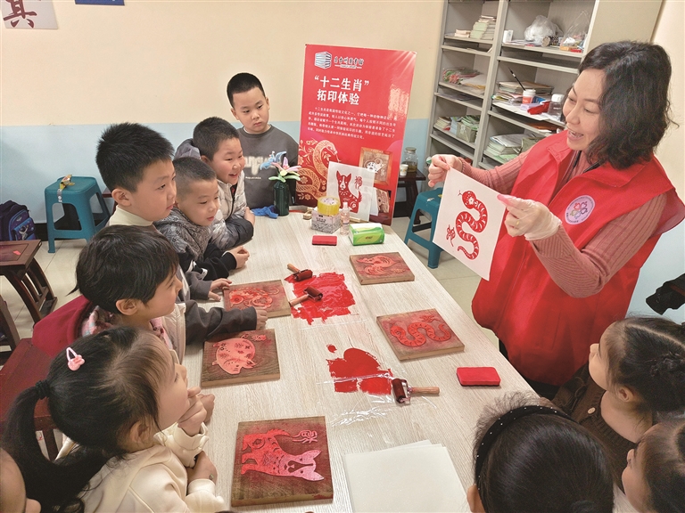 1月20日,昌吉州图书馆联合呼图壁县图书馆在呼图壁镇吉祥社区开展了“我们的中国梦·文化进万家 传统文化进社区”活动,辖区30余名学生学习了剪窗花和十二生肖拓印技艺。 □陶 荣摄