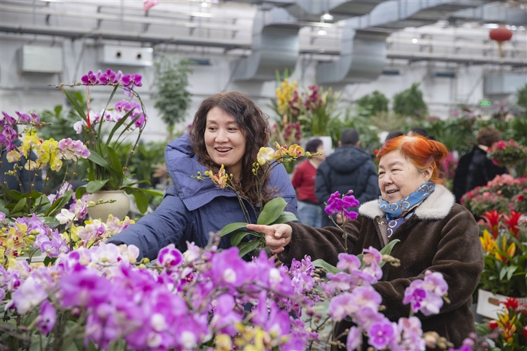 1月23日,市民在昌吉市一家花市购买鲜花。春节来临,花卉市场迎来销售旺季,各种花卉竞相开放,扮靓了节日市场。