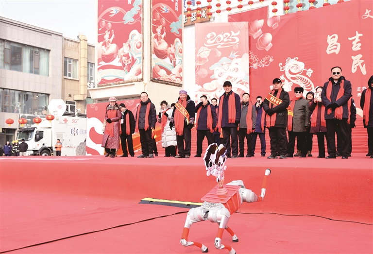 社火表演现场,北京南路街道社火代表队的萌娃变脸、戏曲亮相、蛇宝送福等特色表演,让观众直呼精彩;被誉为“中国民间文化艺术之乡”的二六工镇将“新疆花儿”带到现场,精彩的歌伴舞更是博得了观众的阵阵喝彩;榆树沟镇社火代表队将杂技融入了社火表演,演员们身姿轻盈,将力量与技巧完美结合,展现出高超的技艺和默契;三工镇社火代表队把“许仙”和“白娘子”请到表演现场,演员幽默风趣的表演,逗得观众哈哈大笑;阿什里乡社火代表队更是创意十足,在社火表演中加入了阿肯弹唱以及挤奶舞等富有本地地域特色的歌舞元素,向观众展现了牧区群众勤劳、勇敢的精神面貌;建国路街道社火代表队还将机器狗带到现场,与演员们共乐共舞,向各族群众“挥手”拜年……这场精彩纷呈的文化民俗盛宴,将传统与创意、民俗和文艺有机融合,让观众大饱眼福,演出现场掌声、欢呼声更是一浪高过一浪。