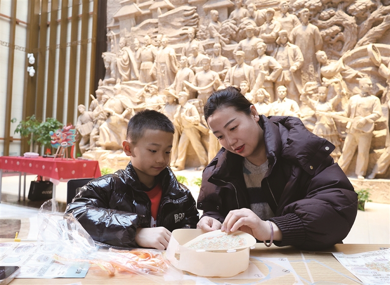“今天我和妈妈、妹妹一起来参加元宵节社教活动,非常开心,我不仅学会了如何制作宝相花鼓灯,还了解了许多文物背后的历史故事。”8岁的林爱儿说。