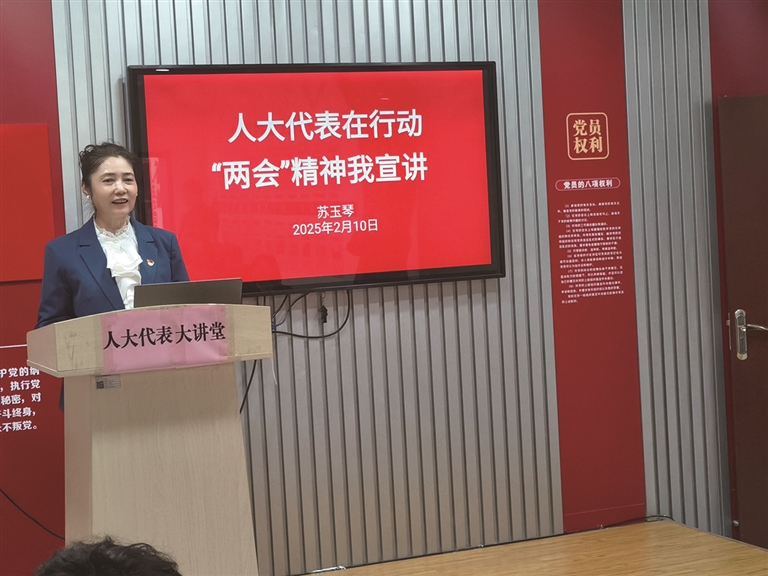 昌吉州、昌吉市人大代表苏玉琴走进绿洲路街道人大代表大讲堂,向基层人大代表和群众宣讲区、州、市两会精神,呼吁基层人大代表多关注社情民意,多为家乡发展代言。 □热依汗摄
