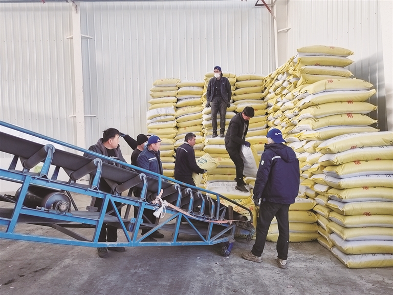 2月14日,记者走进位于昌吉市三工镇的昌吉州昌农农业生产资料有限公司农资储备中心一号仓库,看到一袋袋化肥堆放整齐,几名工人正紧张忙碌地往一辆农资配送货车上装运化肥。