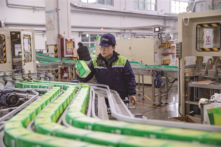 2月9日,位于昌吉高新技术产业开发区的新疆恒安纸业有限公司生产车间里,工作人员正在生产线上作业。春节过后,该公司开足马力生产,8条生产线满负荷运行,平均每天出货1.5万件。