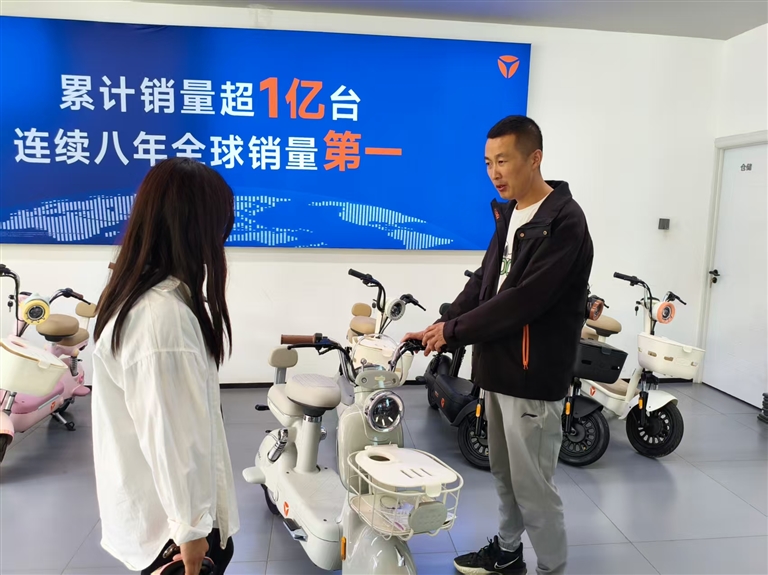 陈峰向记者介绍:“自电动车以旧换新政策实施以来,我们品牌电动车销量直线上升,咨询量、成交量都大幅增长,3月到4月,门店共卖出400辆电动车,预估5月销售量还能迎来爆发式增长,我对完成今年2000台车的销售目标很有信心。”