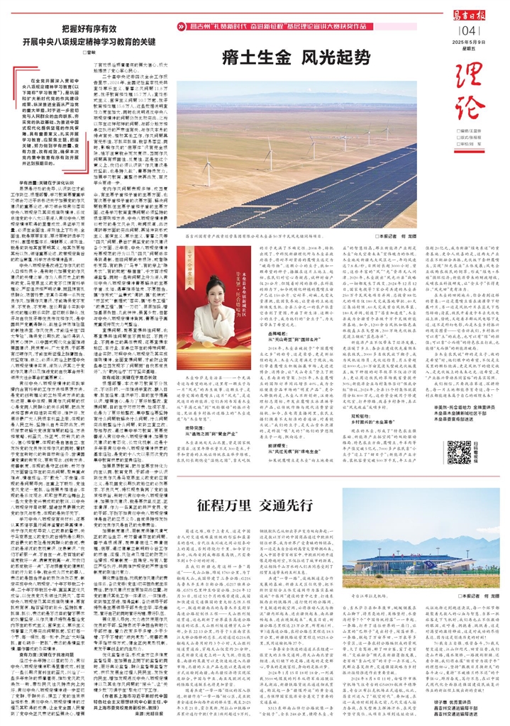 S313东部南山伴行公路就像一条“金链子”,全长248公里,横跨木垒、奇台、吉木萨尔县和阜康市,蜿蜒铺展在天山脚下,将月亮地村、英格堡村、水磨沟村等7个“中国传统村落”一一串起。一条路,打开了通往世界的一扇门,让山里的“巴郎子”走出村子,闯荡世界。一条路,联起了万亩旱田、一万泉等多个景区,这一条农村公路编织成的景观带,火了自驾游,醉了四方客,富了老百姓。“交旅融合”模式在新疆蓬勃发展,老百姓“靠山吃穷”的日子一去不返,人民群众喜笑颜开,交通强国战略为乡村振兴接续推进作出重要贡献。