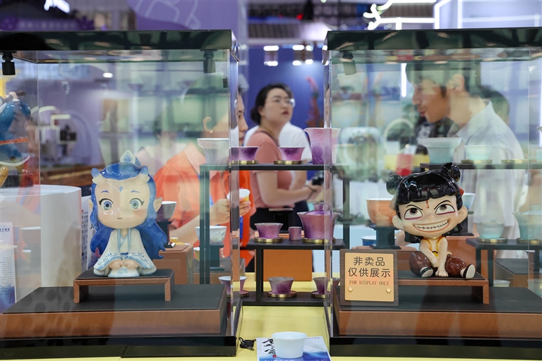 文博会上展示的电影《哪吒》周边产品(5月22日摄)。□新华社记者 梁 旭摄
