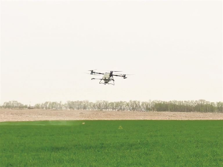 “今年我种植了230亩小麦,以前人工喷洒叶面肥,不仅效率低,而且劳动强度大。现在有了无人机,3个小时就能完成施肥作业,轻松多了。”徐新友说。