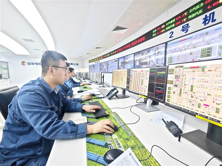 6月9日,中电投新疆能源化工集团五彩湾发电有限责任公司集控室,技术人员正在监测发电机组运行情况。近年来,中电投五彩湾发电公司坚持科技创新,加强科技攻关与技术突破,目前已拥有56项自主知识产权,其中包括14项发明专利,荣获国家优质工程奖、高新技术企业等多项荣誉。