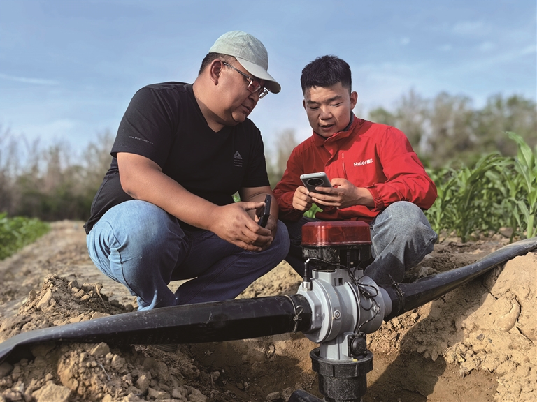“以前浇水得守着水泵房,一连四五天都睡不好觉,还要挨个开关阀门。如今躺在炕上用‘慧丰收’APP就能搞定,不仅节省人工,浇水还均匀。”潘存强晃了晃手机说。