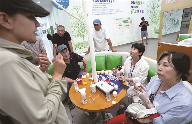 6月17日,培训班学员在位于陕西省渭南市的中垦华山牧乳业有限公司了解不同类型的乳产品。