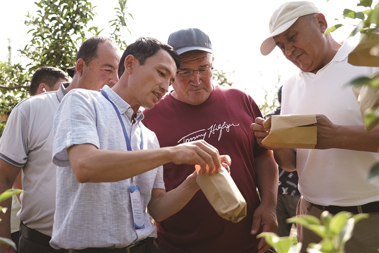 从旱地小麦高产栽培技术,到苹果嫁接栽培和新品种培育,再到乳制品加工技术……培训项目内容丰富,学员在老师和专家的带领下,走进农业基地、生产加工企业和科研院所,进行理论学习和观摩实践。中亚五国职业农民培训项目自2023年开展以来,已有150名来自中亚的学员顺利完成培训,促进了中国与中亚国家农业交流合作。