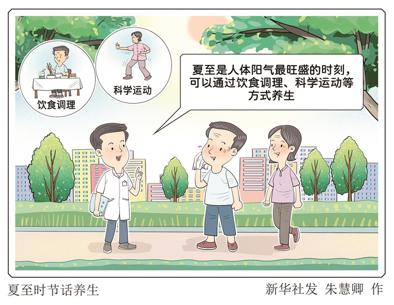 新华社北京6月20日电 (记者田晓航、唐紫宸)6月21日是夏季的第四个节气“夏至”。中医专家介绍,这一时节气温高、降水多、湿度大,闷热难耐,容易引发中暑、消化不良、湿疹等疾病或症状,养生防病重在顺时养阳、清热祛湿、宁心护阴。