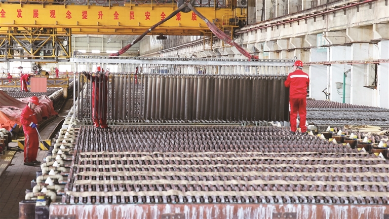 新疆五鑫铜业有限责任公司是一家从事阴极铜、硫酸、黄金、白银等冶炼、加工与销售为一体的综合性企业,作为新疆有色金属行业规模最大的阴极铜生产企业,其产能与技术水平在区域内具有显著优势。今年1月至5月,企业累计完成产值45.29亿元,同比增长16.33%,产品销往疆内以及重庆、上海、湖北等地。新疆五鑫铜业有限责任公司生产技术部副主任李渊说:“我们优化生产管理、加强供应链协同,产品订单量同比增长了16%,按照当前生产进度,预计上半年实现工业总产值55.8亿元,同比增长16.64%。”