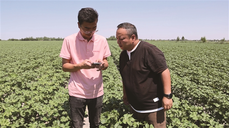 在九运街镇六运中心村的高标准农田里,种植户王洪杰正通过手机APP远程操控智能灌溉系统。“现在用手机就能精准控制灌溉,既方便又高效。”王洪杰介绍,他的2000多亩棉田全部采用了智能水肥一体化系统。