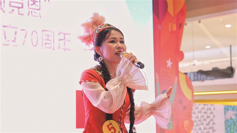 一曲《一杯美酒》点燃现场,原创作品《博格达峰雄鹰》、冬不拉弹唱《幸福之歌》《吐鲁番的葡萄熟了》等节目,融合民俗特色与时代气息,生动诠释了民族团结的深厚内涵。滋泥泉子镇的吉他鼓弹唱《爱在滋泥泉》更是以创新形式展现了本土文化的魅力,将现场气氛推向高潮。参赛选手连成君说:“作为一名教育工作者,我也会把这份爱国爱疆的情怀传递给学生,引导他们从小爱党爱国,铸牢中华民族共同体意识。”